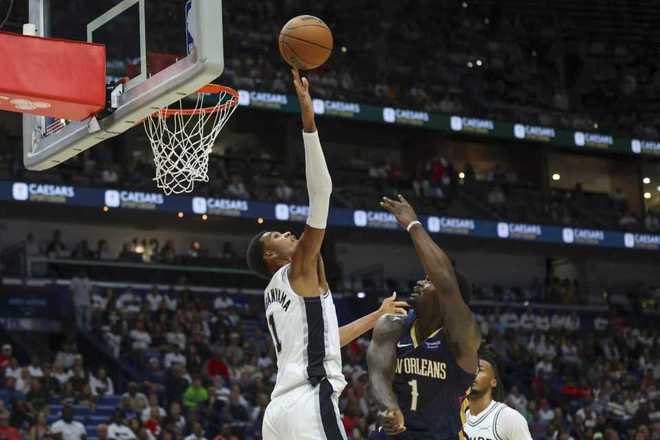 马刺首场客场125-92大胜独行侠,鹈鹕首场客场122-128惜败灰熊。本场马刺缺少福克斯、索汉等4位球员,鹈鹕缺少穆雷与卢尼等5位球员。首节比赛开局,文班亚马防守端接连3次大帽锡安,双方维持7-7,并在之后缠斗至17-17。马刺还剩2分半钟取得25-24领先优势,马刺连得5分扩大优势,鹈鹕再追3分,首节结束马刺30-27领先鹈鹕,普尔单节11分。