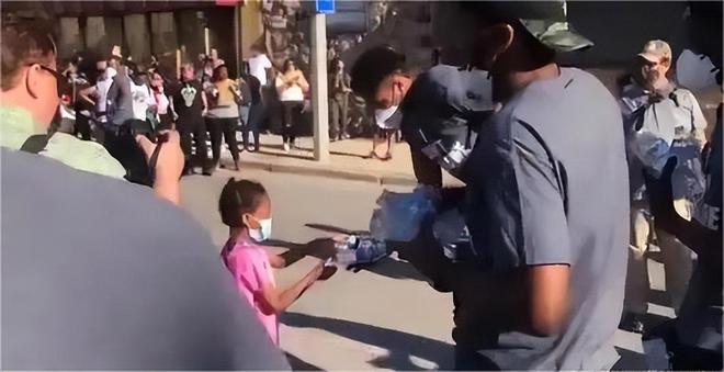 字母哥更是亲自弯腰给这些参与者发放矿泉水。