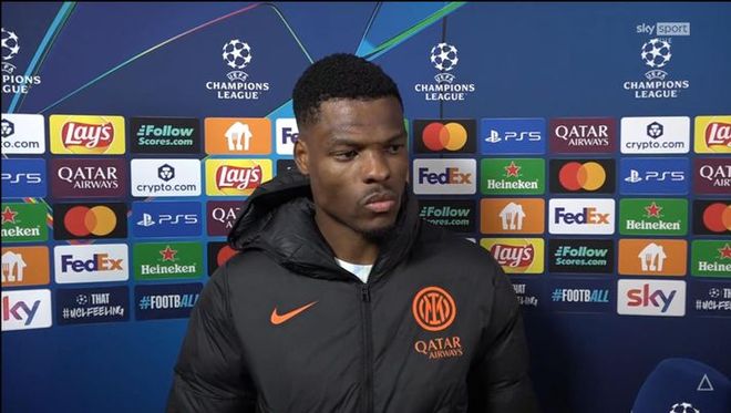 欧冠联赛阶段第3轮一场较量,国际米兰客场4-0大胜圣吉罗斯联合,为国际米兰打进首粒进球的丹泽尔-邓弗里斯接受了意大利天空体育的采访。