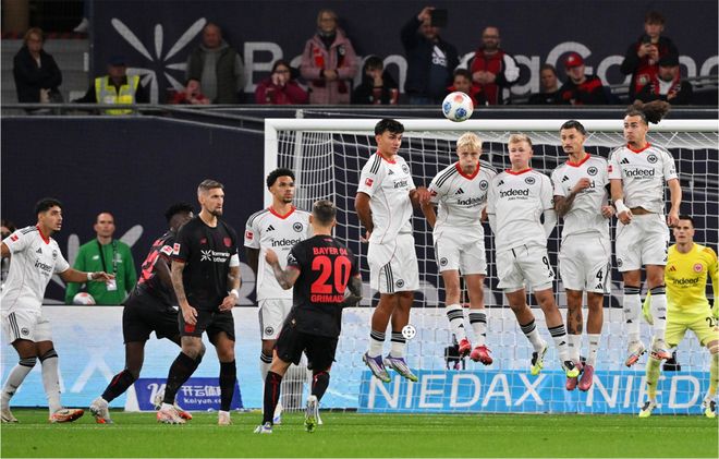 现今足坛几乎没有其他职业球员的任意球转化率能比得上格里马尔多。这位西班牙人会给球施加极强的旋转,让球在越过人墙后急剧下坠,令门将难以扑救。在第三轮对阵法兰克福的比赛中,他就是用这种方式两次攻破了迈克尔・泽特勒的球门:一次是1-0领先的进球(如图),另一次是终场前锁定3-1胜局的进球。
